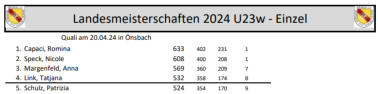 524 Kegel nicht zur Teilnahme am Finale gereicht.